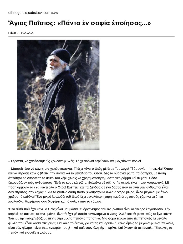 Άγιος Παΐσιος - Πάντα εν σοφία εποίησας | PDF
