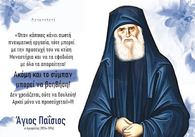 Ἀπό τό Βιβλίο Ἁγ. Παϊσίου Ἁγιορείτου ΛΟΓΟΙ Β’ «Πνευματικὴ Ἀφύπνιση» σελ.186 ἐκδόσεις ΙΕΡΟΝ ΗΣΥΧΑΣΤΗΡΙΟΝ «ΕΥΑΓΓΕΛΙΣΤΗΣ ΙΩΑΝΝΗΣ Ὁ ΘΕΟΛΟΓΟΣ» ΣΟΥΡΩΤΗ ΘΕΣΣΑΛΟΝΙΚΗΣ Προσευχή, ὀρθὴ ζωή, παρ…
